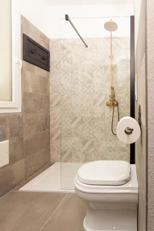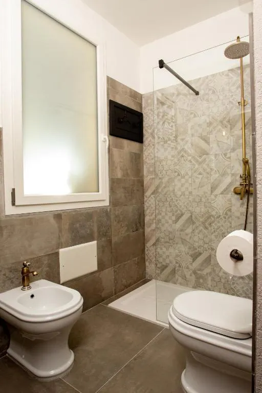 Il bagno privato, spazioso e funzionale, completa l'esperienza di lusso con una maxi doccia, bidet, asciugacapelli e un set di morbide spugne sempre a disposizione.