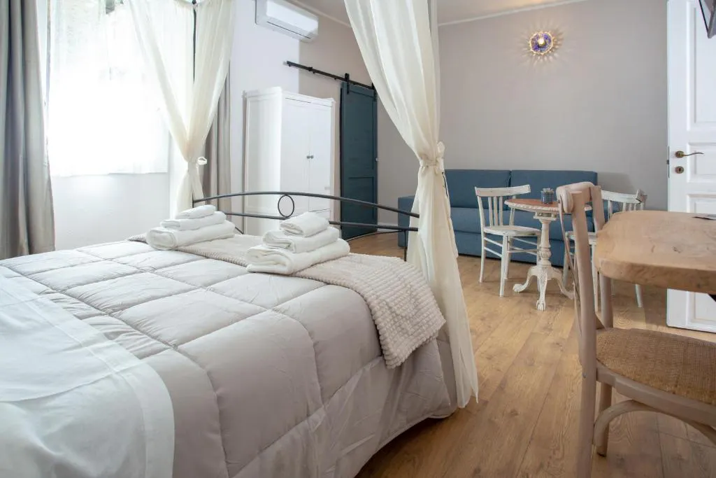 La suite è dotata di ogni comfort moderno: Smart TV, prese USB strategicamente posizionate per i tuoi dispositivi e gestione autonoma del clima (riscaldamento e condizionamento) per garantirti il massimo benessere in ogni stagione.