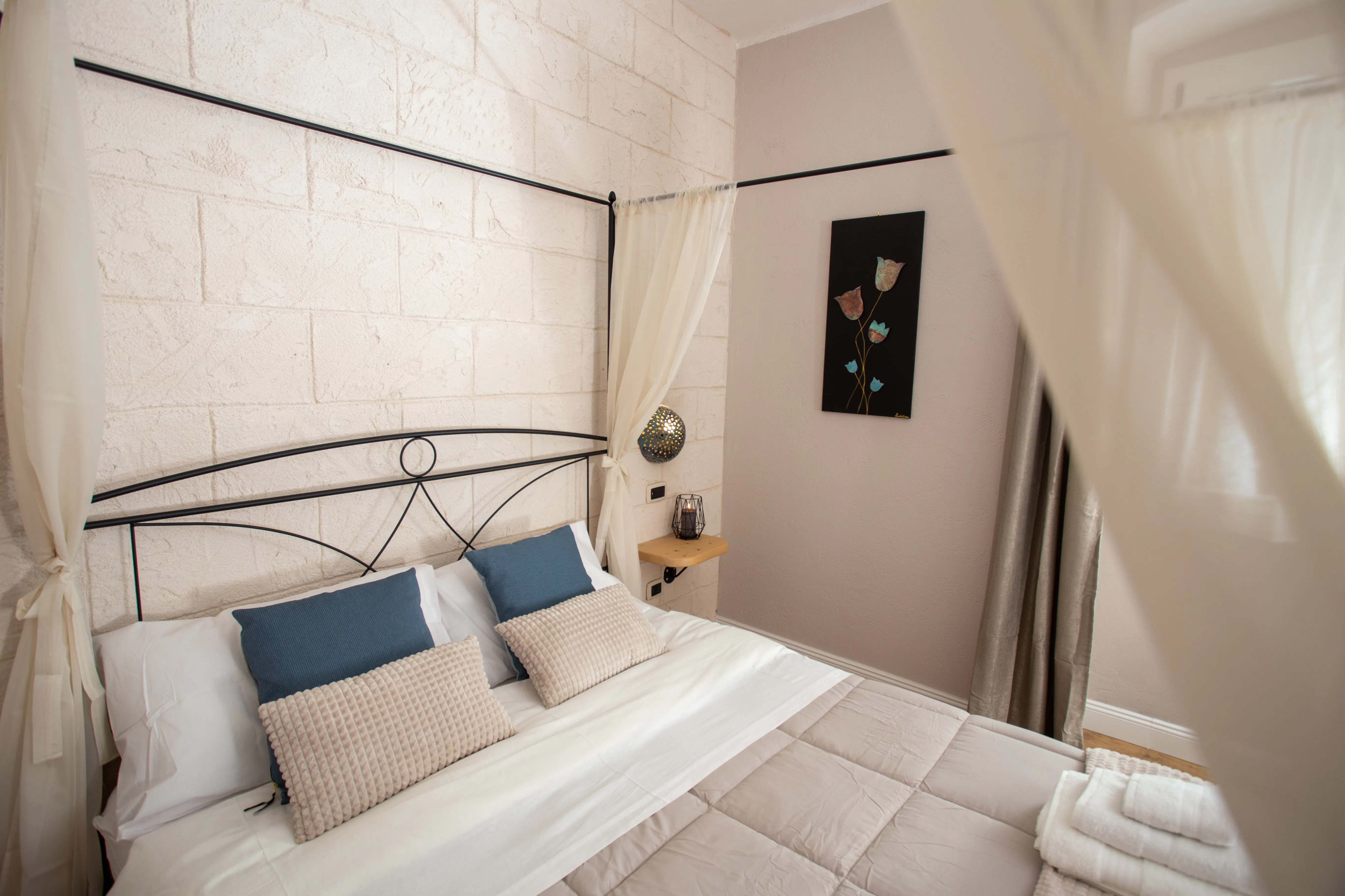 The private bathroom, spacious and functional, completes the luxurious experience with a large walk-in shower, bidet, hairdryer, and a set of soft towels always at your disposal.