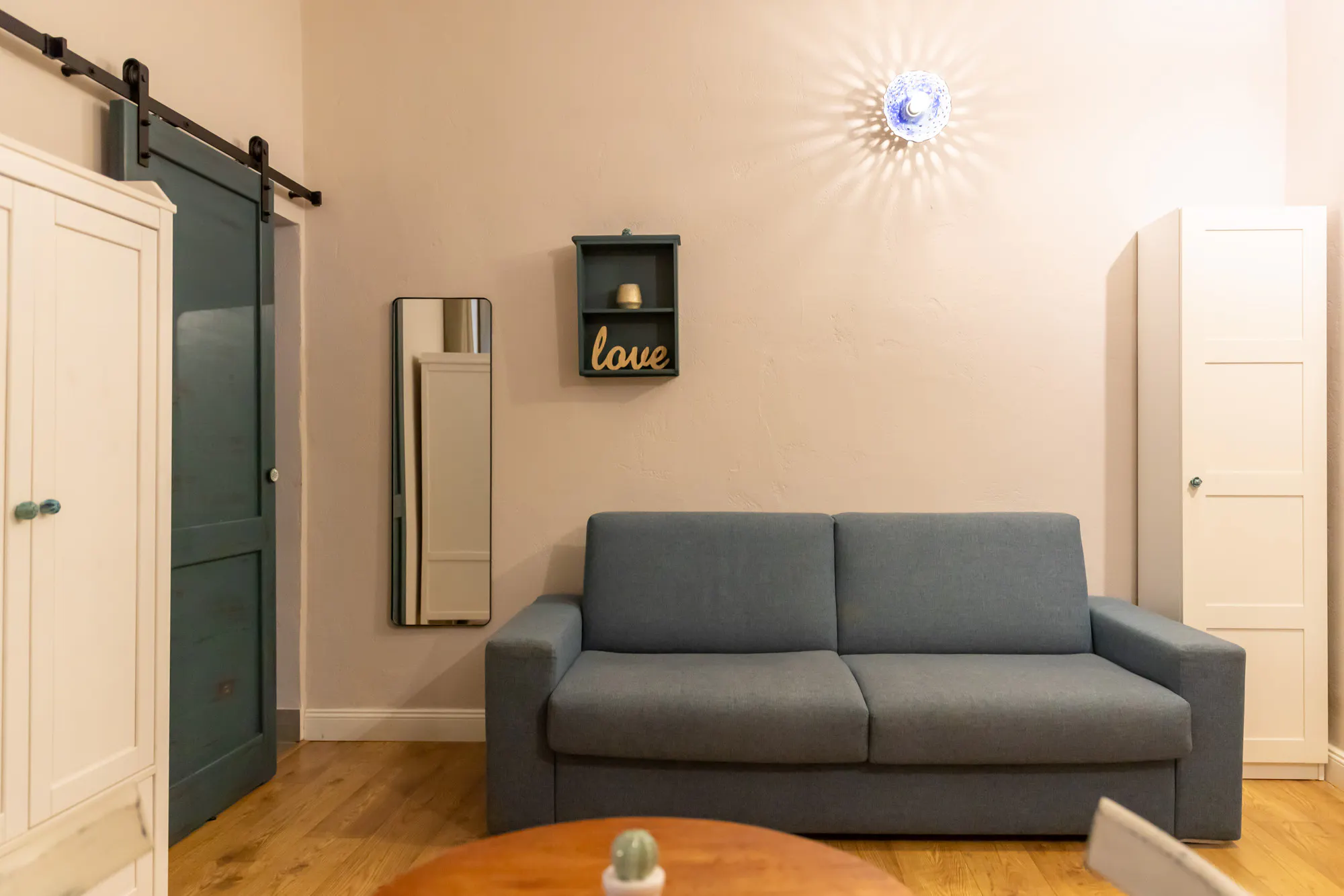 The living area features a cozy relaxation corner, perfect for unwinding after a day of sightseeing.