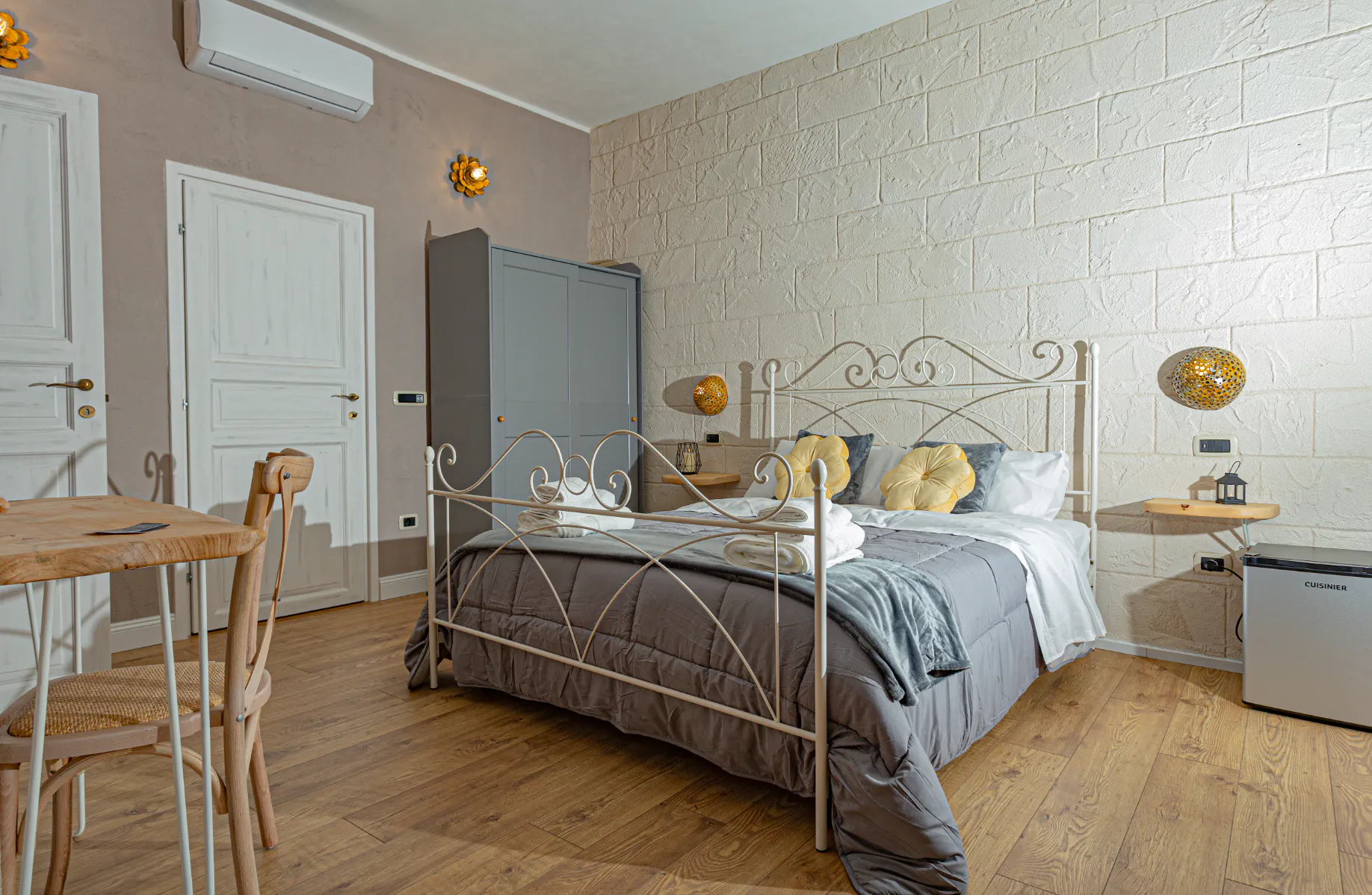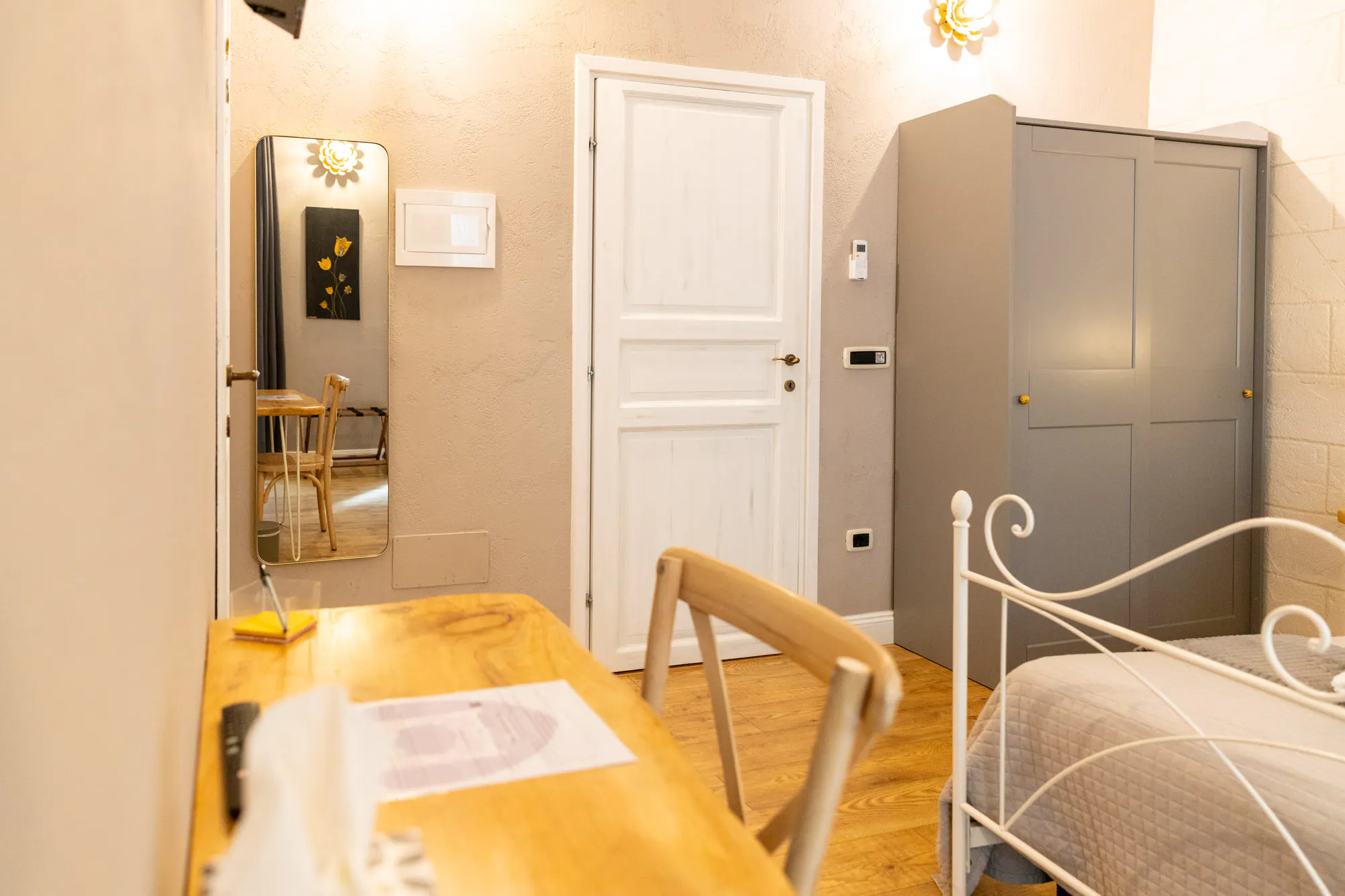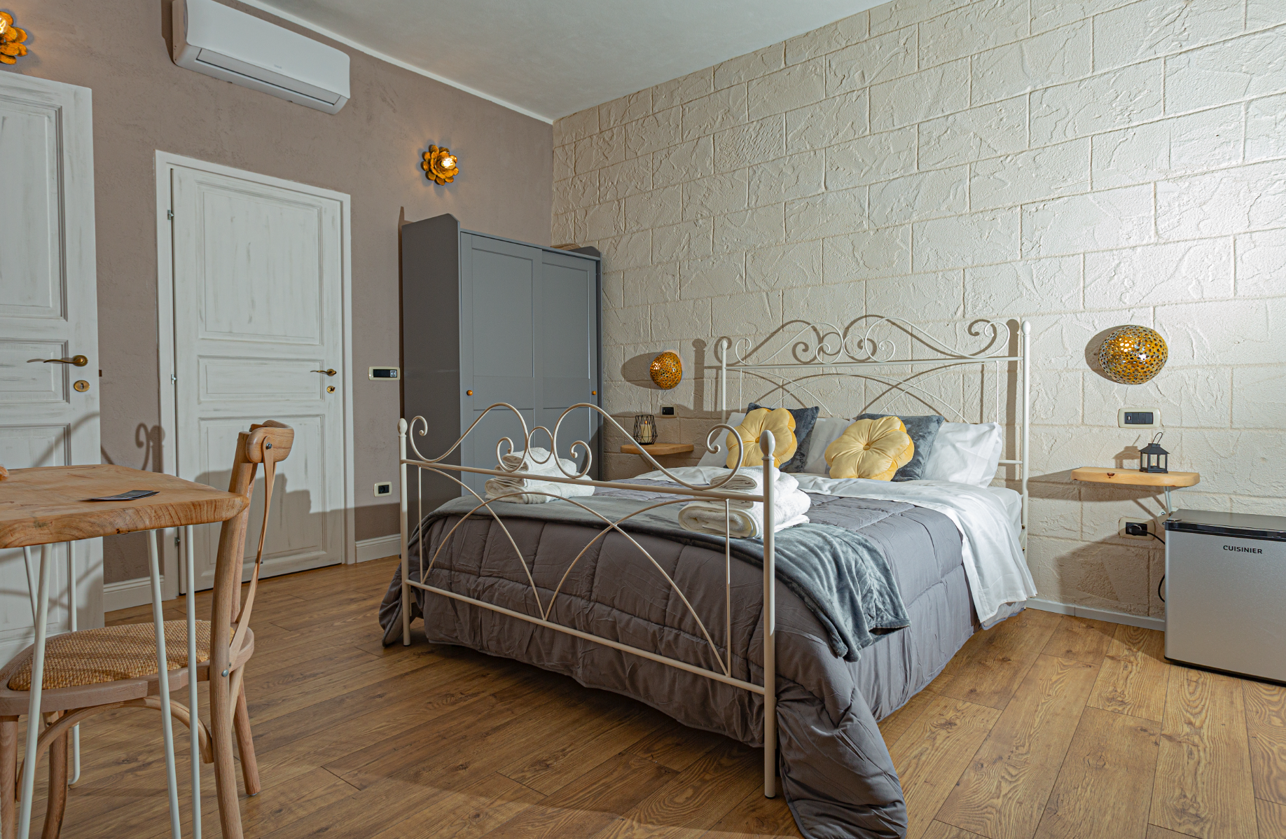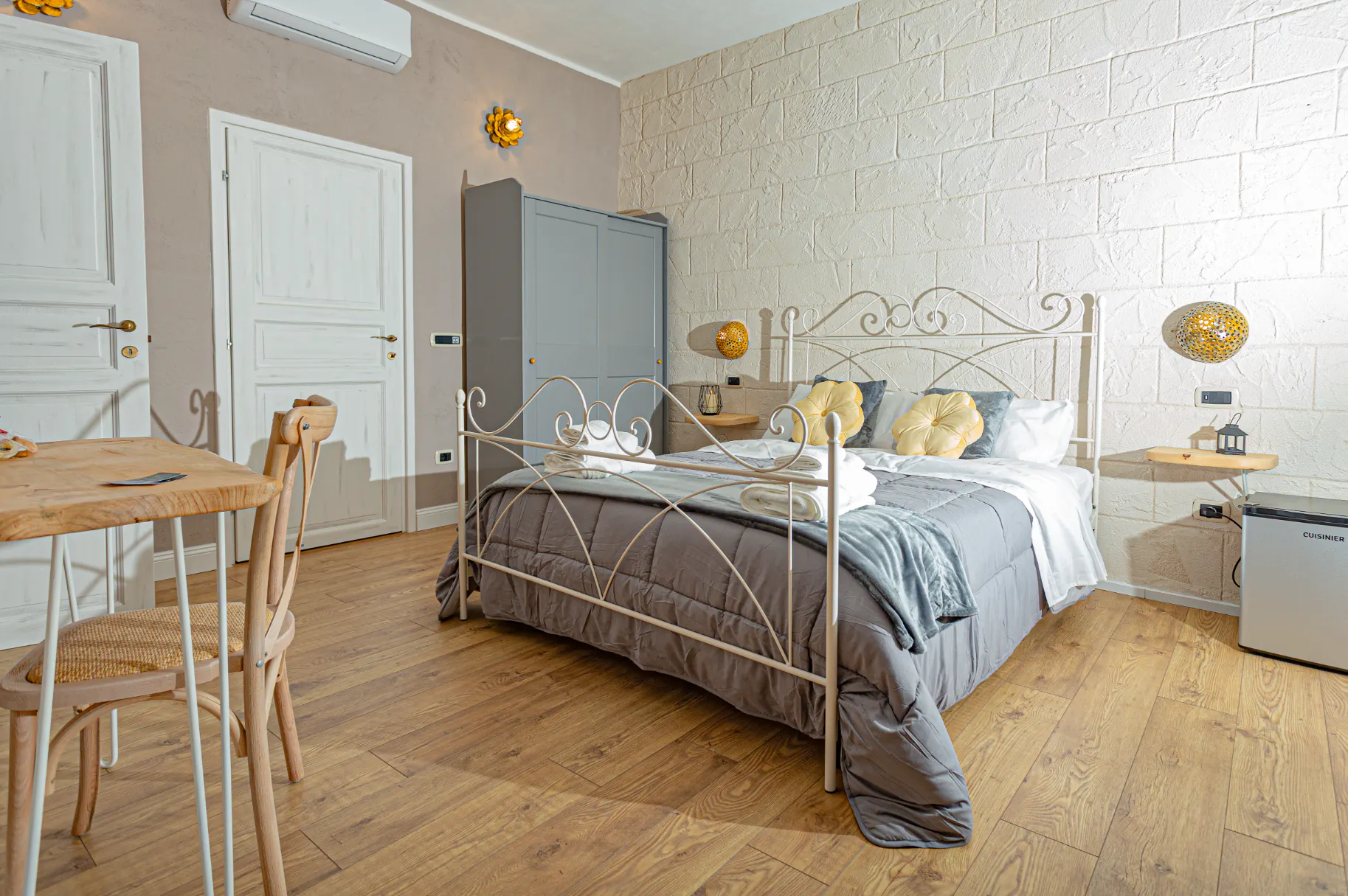 Designed to offer a stay of pure comfort, the room features a cozy relaxation corner—perfect for enjoying a cup of tea or herbal infusion while basking in the natural light that floods in through the large windows. Equipped with the latest modern amenities, it includes Wi-Fi connection, Smart TV, strategically placed USB outlets, and independent climate control (heating and air conditioning).
